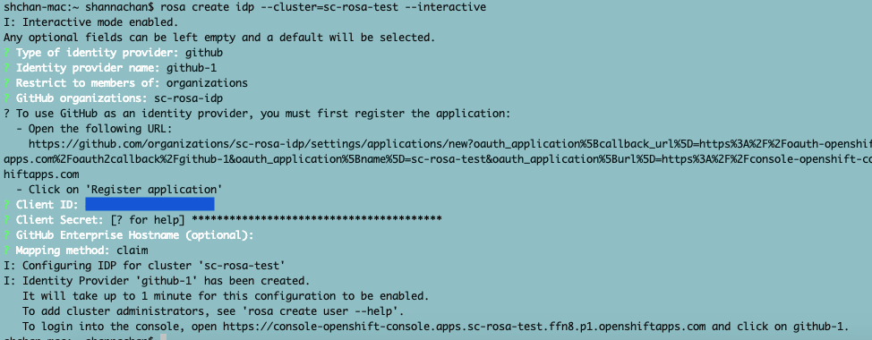 sc-rosa-idpon Github viarosa create idp --cluster=sc-rosa-test --interactiveas show below.