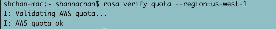 - Verify that your AWS account has the necessary quota to deploy an Red Hat OpenShift Service on AWS cluster via