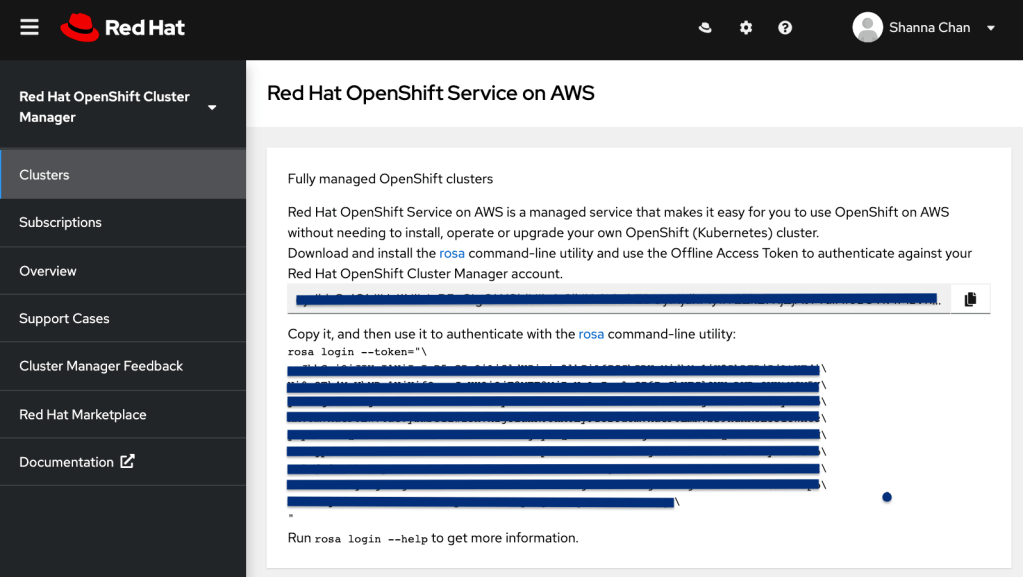 - After login to cloud.redhat.com, go to https://cloud.redhat.com/openshift/token/rosa