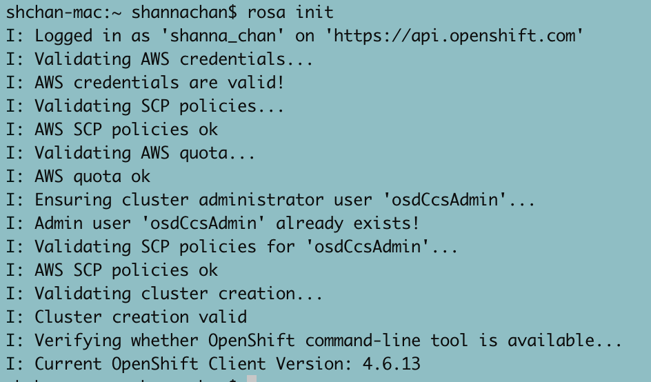 Note: rosa create cluster -i with the interactive option, it provides customization for ROSA installation, such as multiple AZ, existing VPC, subnets, etc…