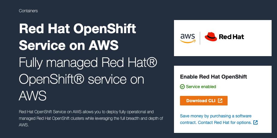 Click on the “Red Hat OpenShift Service on AWS” Service listed.