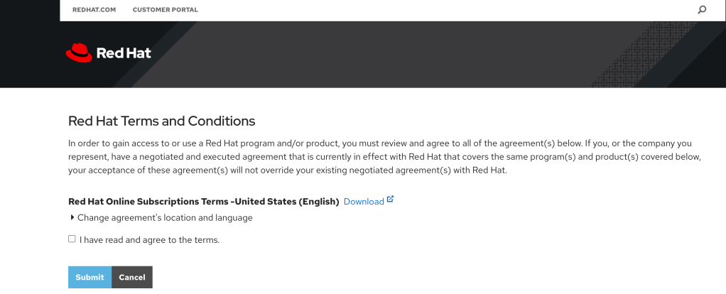 Go to https://cloud.redhat.com/openshift/token/rosa, and you will have to log in and prompt to accept terms as shown below.