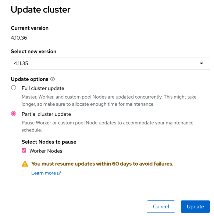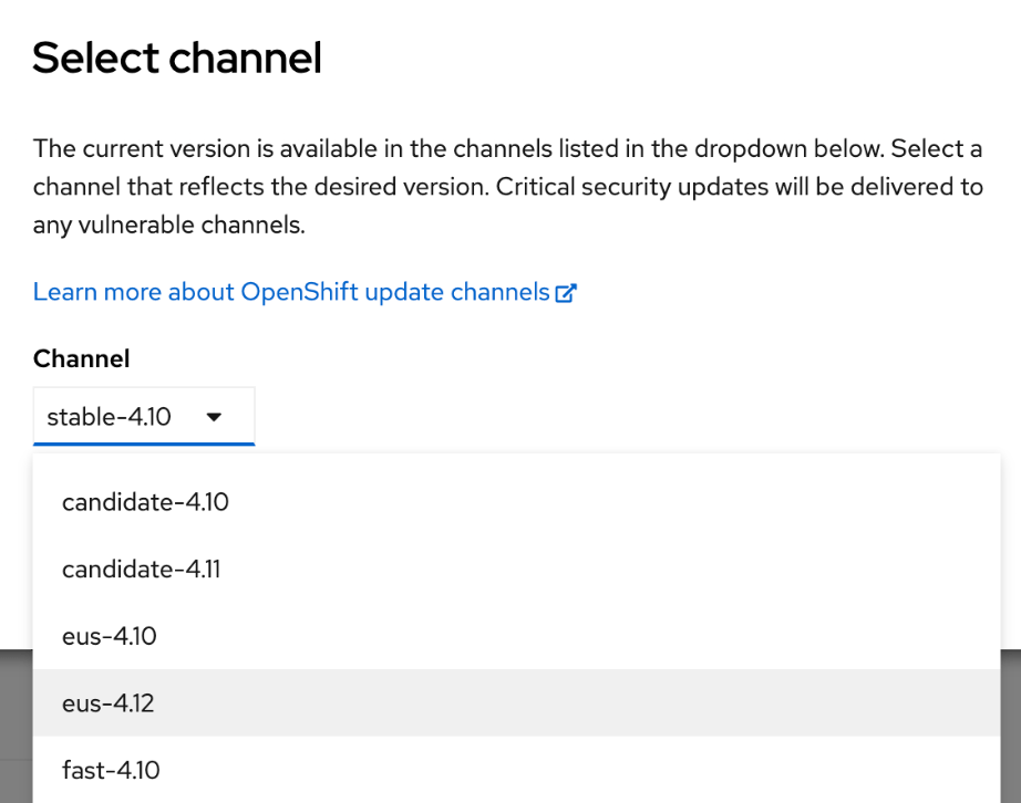- Red Hat OpenShift Extended Update Support (EUS): https://access.redhat.com/support/policy/updates/openshift-eus