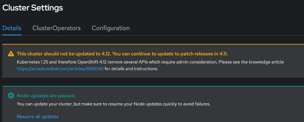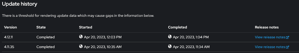 - Upgrade completed and now showing OCP 4.12 (K8S v1.25)