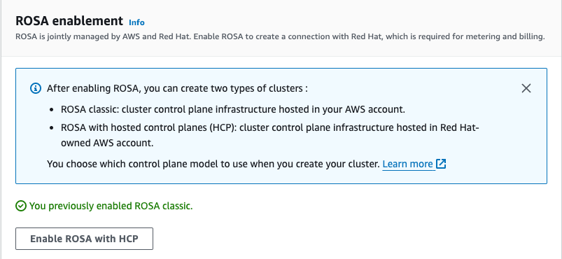 Note: If you are installing ROSA with HCP the first time and failing on the cluster creation, please check out the Troubleshooting section.