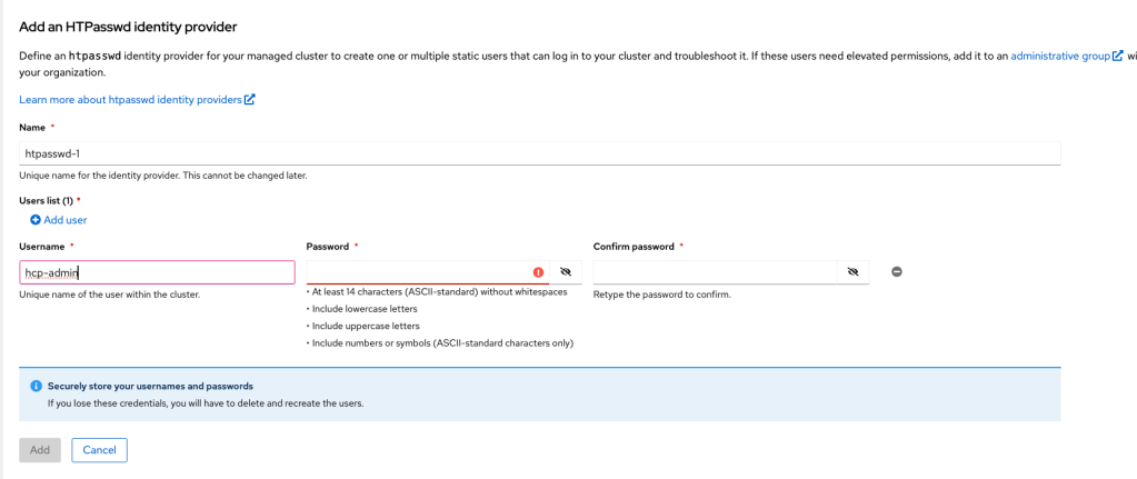 - Once the installation is completed, you can create identity providers via the “Access control” tab. I added the user via “htpasswd.”